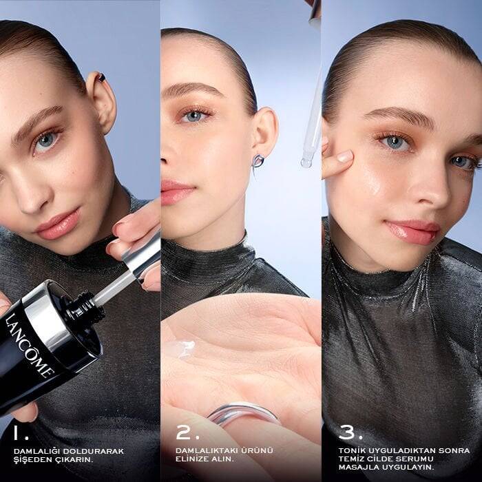 Her sabah ve akşam temiz cilde, cilt bakım rutininizden önce uygulayın . Serumu el aracılığı ile alna, yanaklara, çeneye ve boyuna uygulayın . T bölgesine uygulayarak uygulamayı bitirin. Ardından nemlendirici sürün.